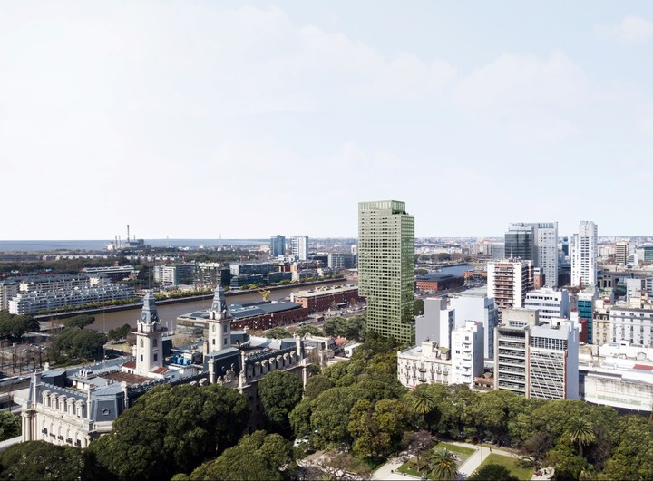 Huergo 475 ocupa un lote estratégicamente ubicado en el Paseo del Bajo. Se inaugurará en el tercer trimestre de este año.