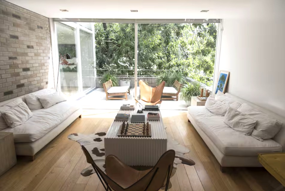El living de la casa de Nicolás Pinto Da Mota, arquitecto y su socia Victoria Maria Falcón. Santiago Cichero/AFV