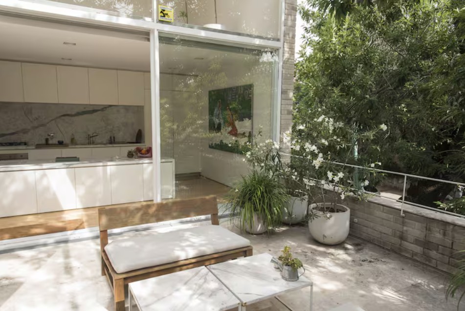 El patio del primer piso se integra genuinamente con la cocina y su larguísima mesada. Santiago Cichero/AFV