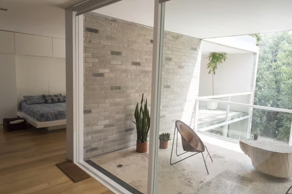 El primer piso de Casa Esquina logra integrar el exterior con el dormitorio principal en el interior. Santiago Cichero/AFV