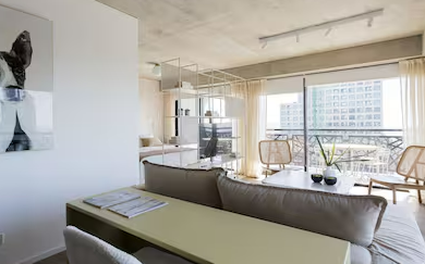 Pero, ¿eso no es un monoambiente? “No, es un dos ambientes con concepto abierto”, responde Rivarola. A diferencia del monoambiente tradicional, donde un único espacio reducido sirve al mismo tiempo para dormir y estar, en esta nueva distribución se conserva la diferenciación, aunque sin paredes. Además, en este concepto, el área de descanso se ubica al ingresar, mientras que el espacio social, con conexión a un balcón aterrazado, se ubica en el fondo de la unidad para aprovechar la luz que generan los ventanales.